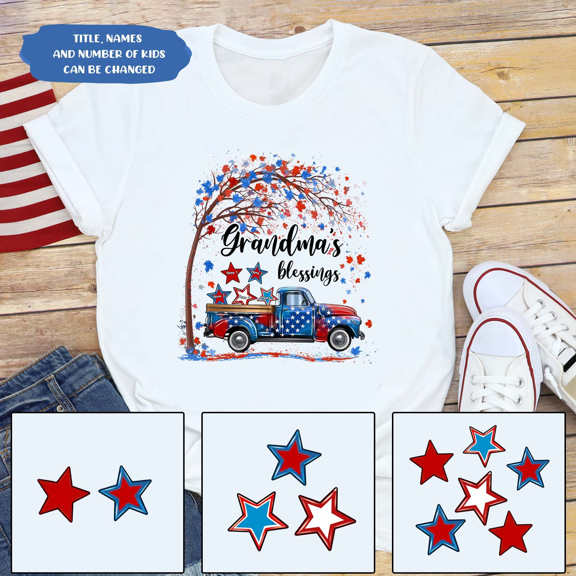Personalized Grandma's Blessings 4th of July Shirt, Patriotic Mama American Stars Grandkids Shirt