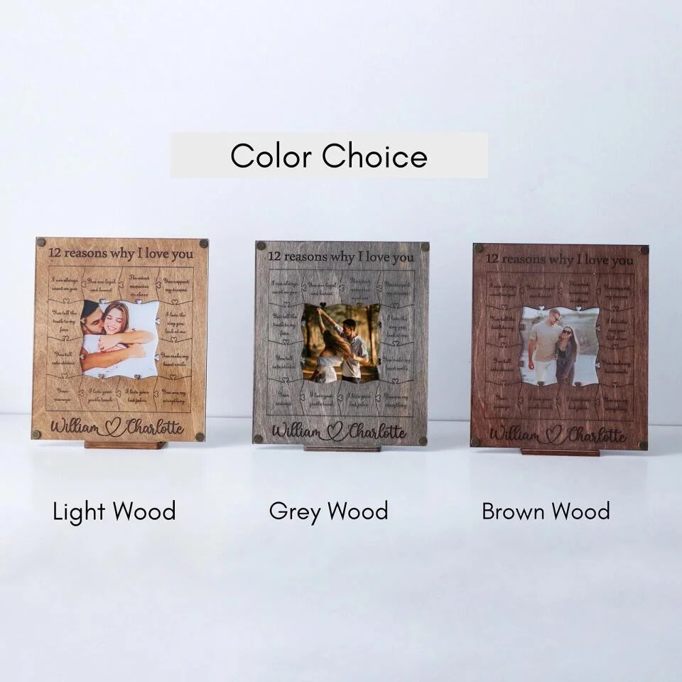 12 Reasons Why I Love You - Personalized Wooden Puzzle Piece Collage Frame, Birthday Gift for Her, Anniversary Gift