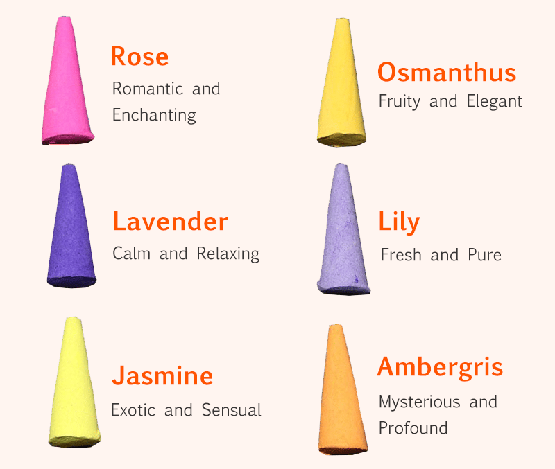 The incense cones are made of natural plant spices. Its fragrance is not as strong as the synthetic flavor. Its scent is more like the scent of spring garden, fresh and natural.