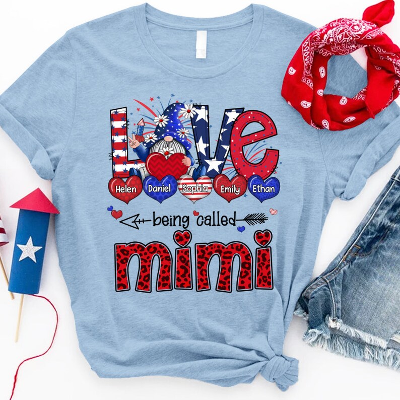 Personalized Grandma Shirt, Custom Grandma Gnomes with grandchild names, Grandma 4th of july Shirt Patriotic Gnomes Pattern Version Tshirt