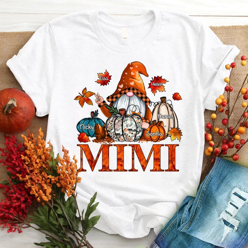 Personalized Mimi Gnome Shirt, Autumn Mimi Shirt with Kids Names