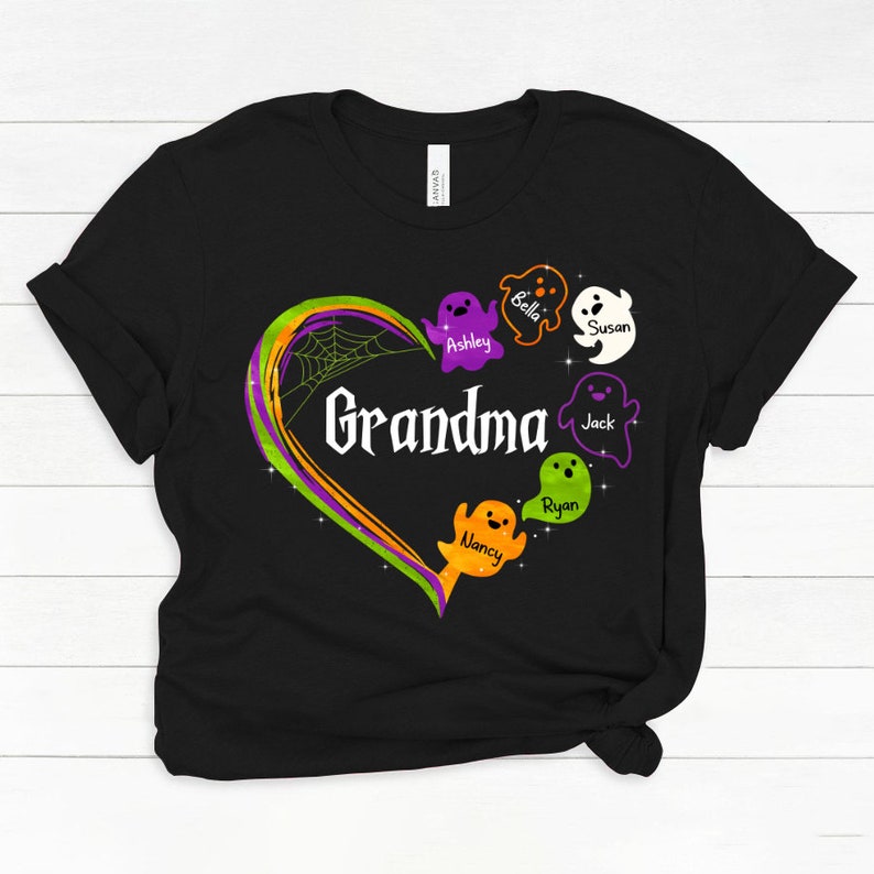 Personalized Grandma Halloween Shirt with Funny Kids Ghost