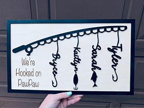 🎁Personalized Fishing Wooden Decor: Personalize with 1-12 names and your choice of a larger message, Available Size: 11" x 6". Choose the number of fish you want and a name for each person who loves that special person in your life.