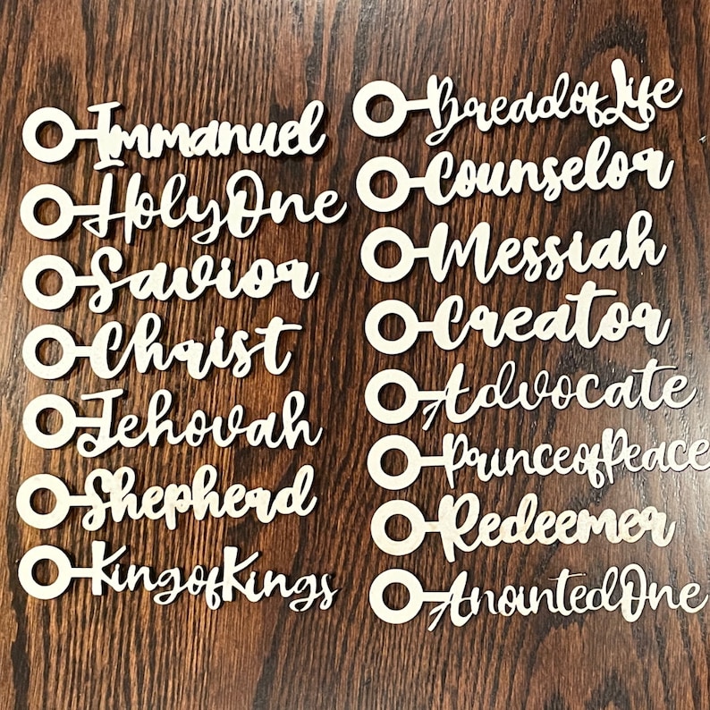 These Names of Christ Christmas ornaments are crafted with the highest quality materials and meticulous attention to detail. Each ornament is unique, as they feature different names of Jesus, such as "Prince of Peace," "Savior," and "Immanuel." These ornaments are perfect for anyone who wants to add a touch of religious significance to their holiday decor. They also make great gifts for Sunday School teachers, pastors, or anyone who loves Jesus. The elegant calligraphy and wood material make these ornaments stand out among traditional Christmas decorations. Buy yours today and add a meaningful touch to your holiday season!