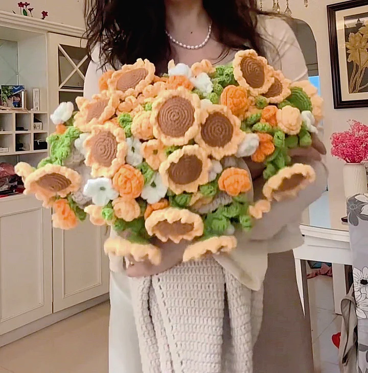 2025 DIY woolen knitted flower bouquet blanket Material crochet creative gift!!!(Need to crochet yourself)