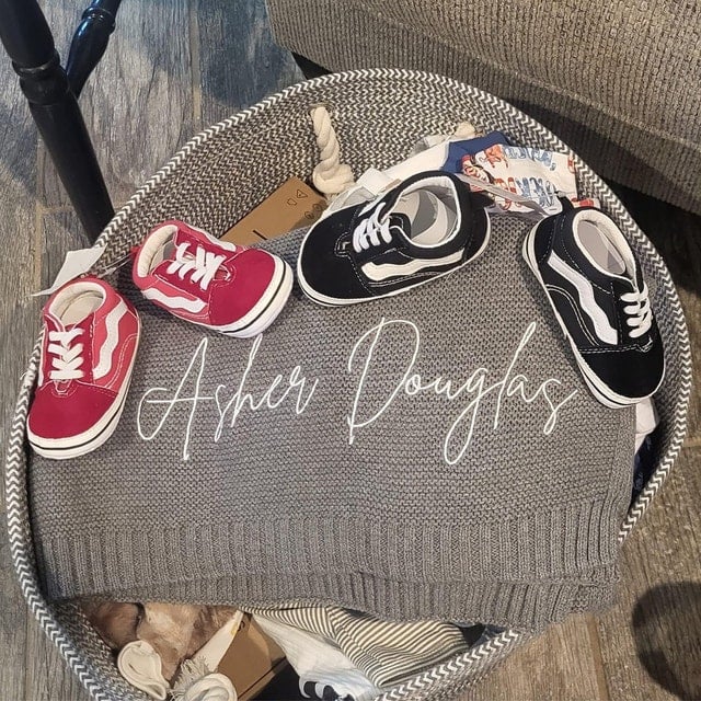 Our exquisite Personalized Embroidered Baby Blanket - the perfect gift for new parents, a heartfelt gesture for a new mom, a cherished present for your pregnant sister and or best friend, or a delightful baby shower gift for the expecting couple.