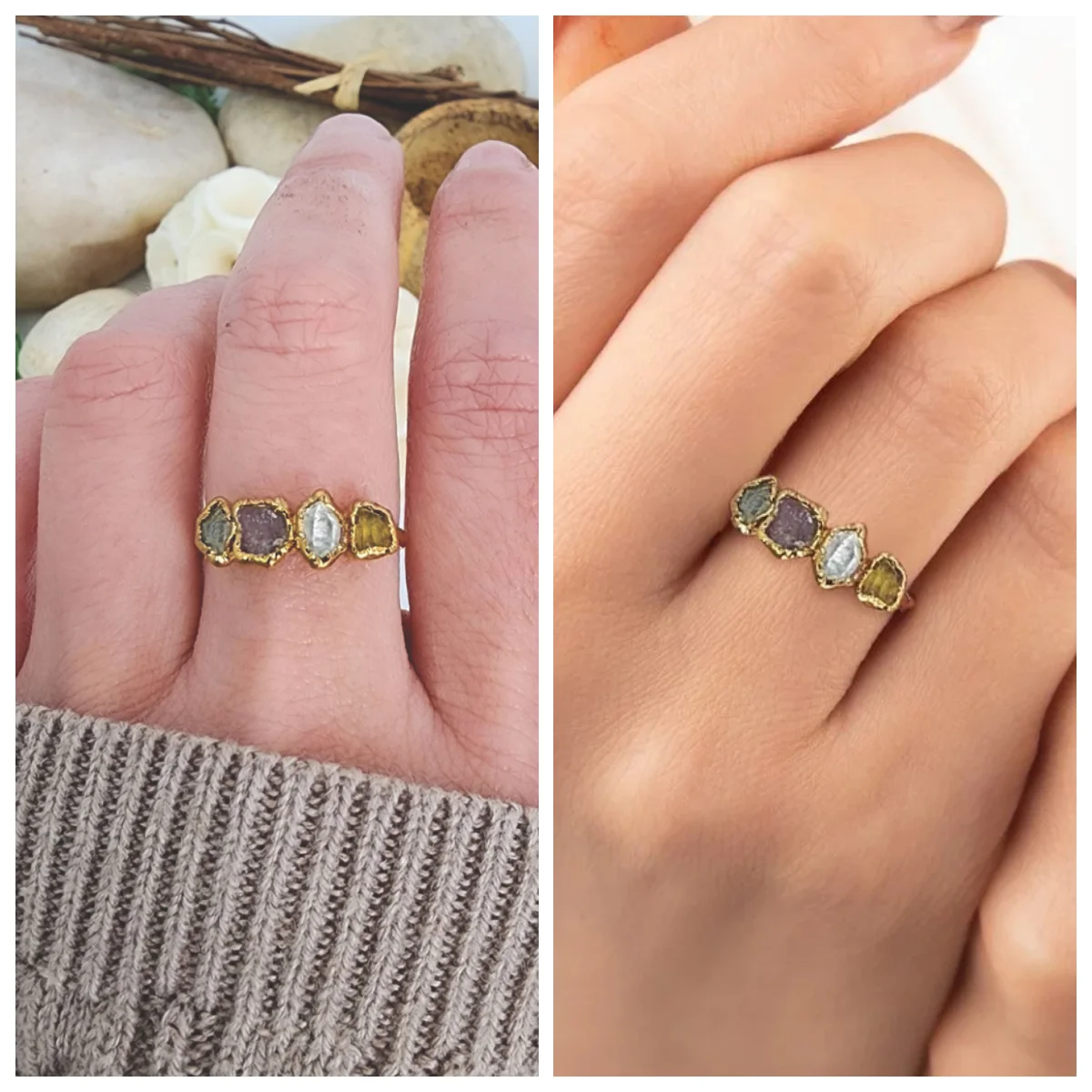 Personalized Birthstones Ring for Women, Custom Raw 2-6 Raw Stones Family Ring, Personalized Gemstone Ring, Mother's Day Gift, Gift for Mom, Gift for Her.