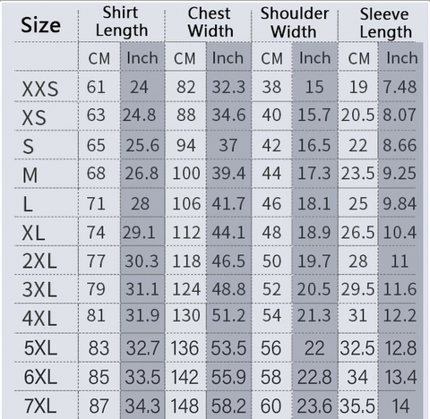 - Available in sizes XXS-7XL, unisex sizing