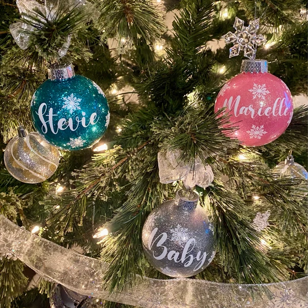 Personalized Glittery Christmas Ball ornament with Snowflakes, Name Bauble Ornament, Customized Christmas gifts, Family name Christmas ornament, Christmas gifts