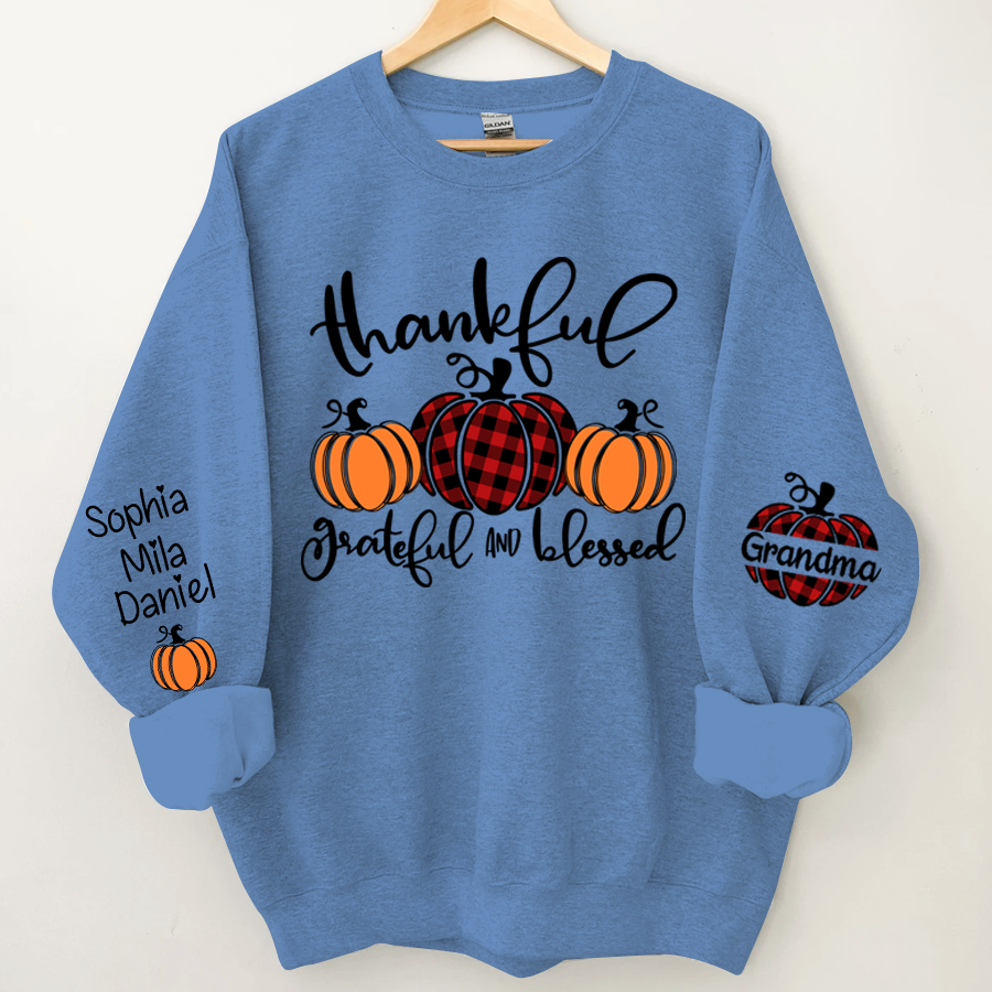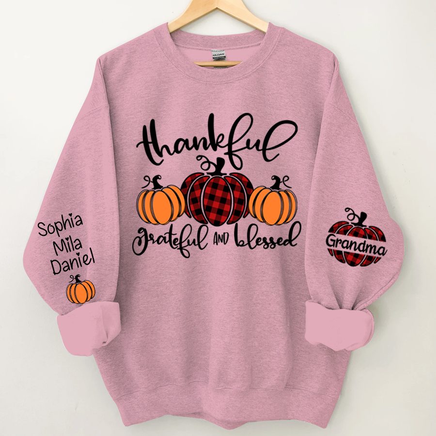 Thankful Grateful And Blessed Grandma Pumpkin With Grandkids Sweatshirt